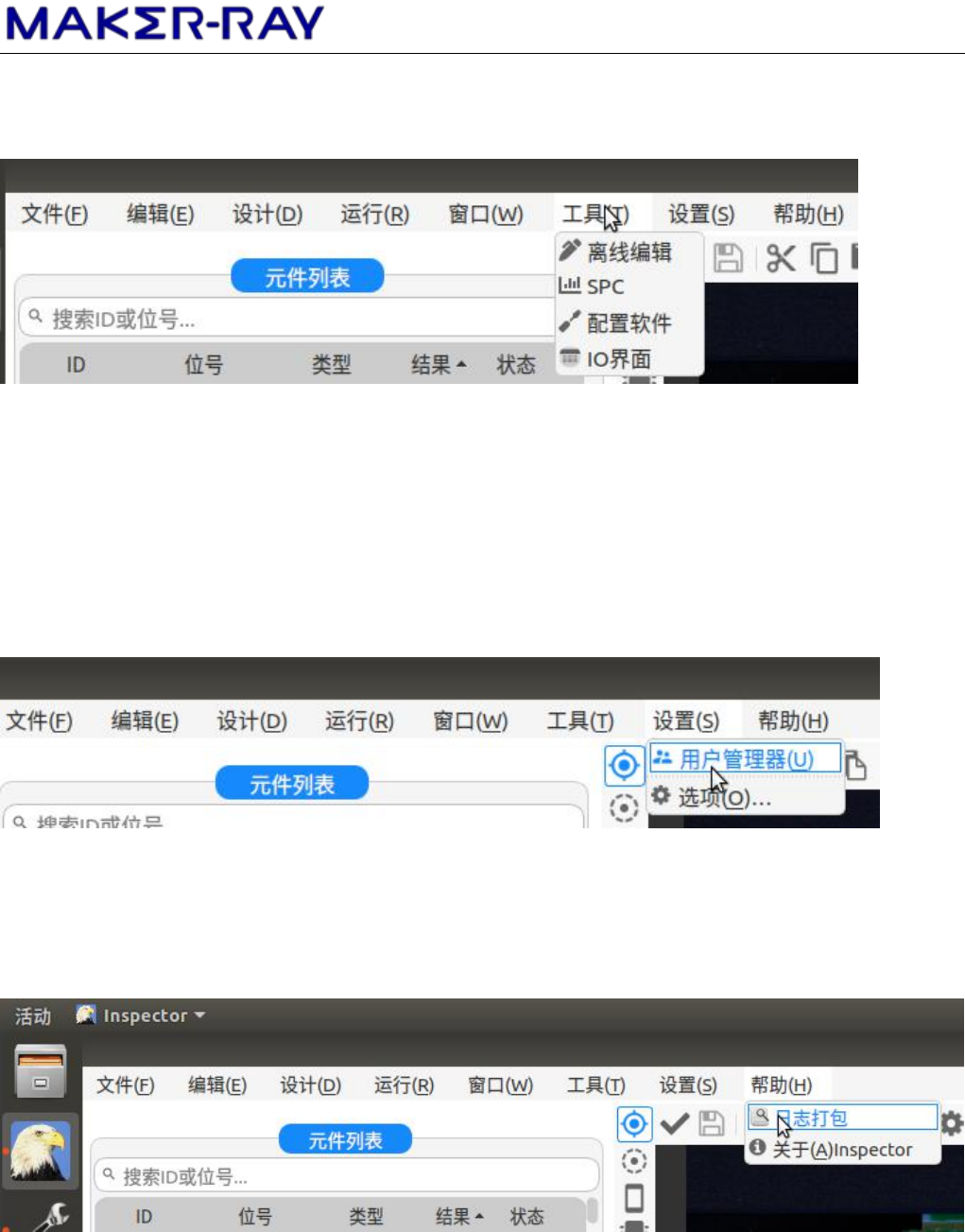 2. 关于(A)inspector:查看软件版本及其他软件信息。