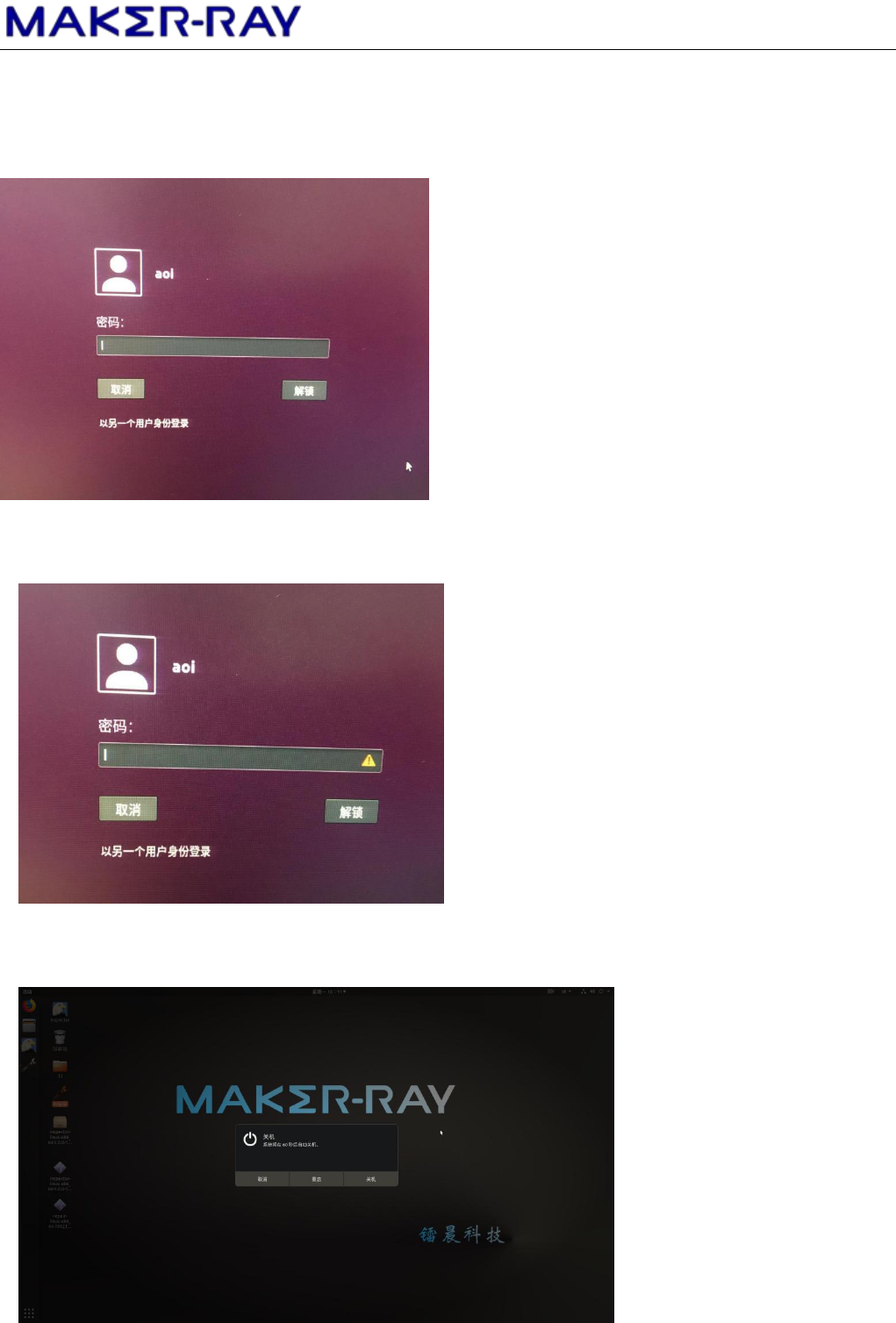 2. 打开电源开关,自动进入登录界面如下: