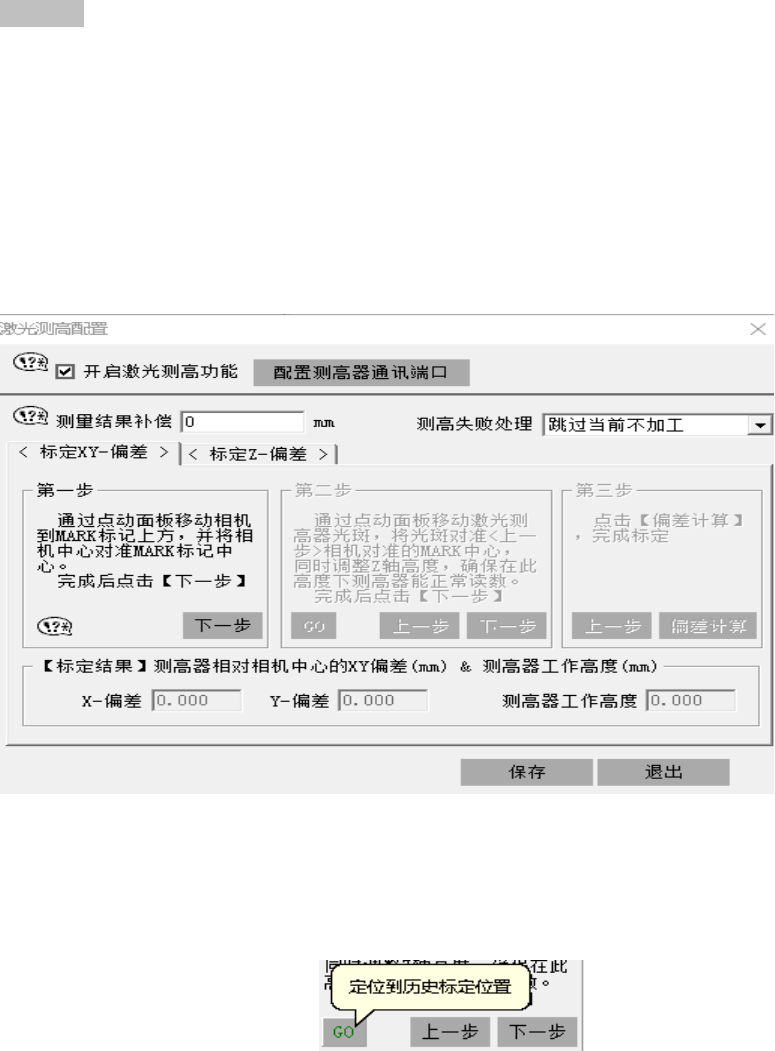 界面中的 GO,代表上一次设置的定位偏差值。若做过偏差标定,可直接点击【GO】按钮,在进行