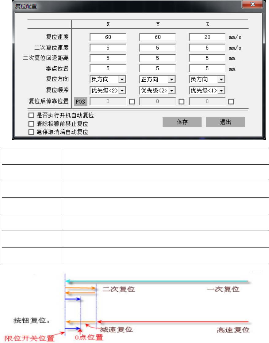 复位完成后 X/Y/Z 轴停靠的位置。此位置也为安全位置。