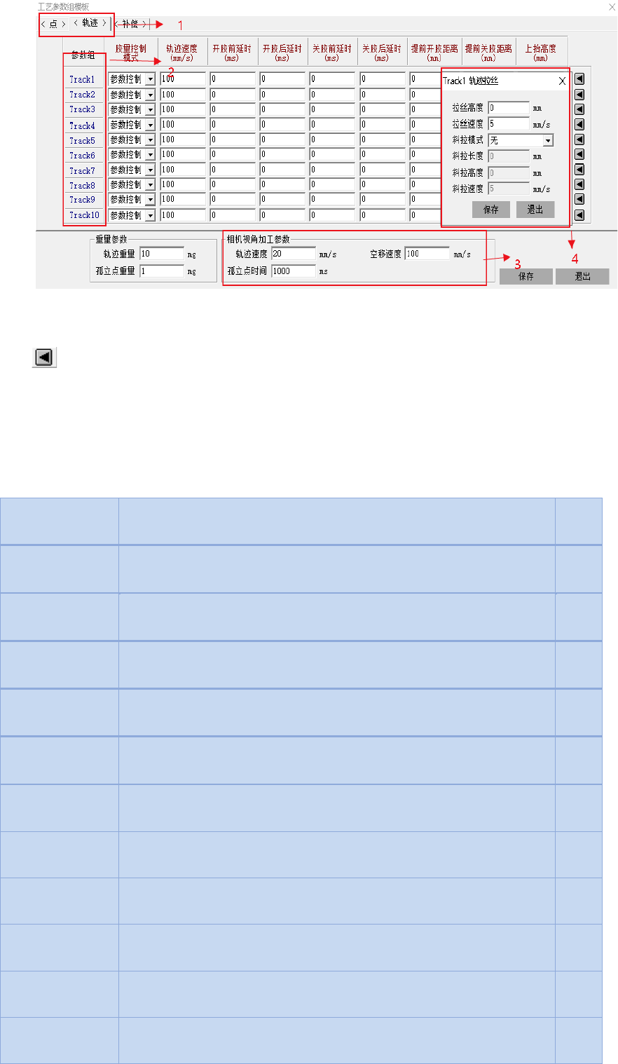 2、工艺参数分组,不同轨迹或点可以单独使用不同参数组。