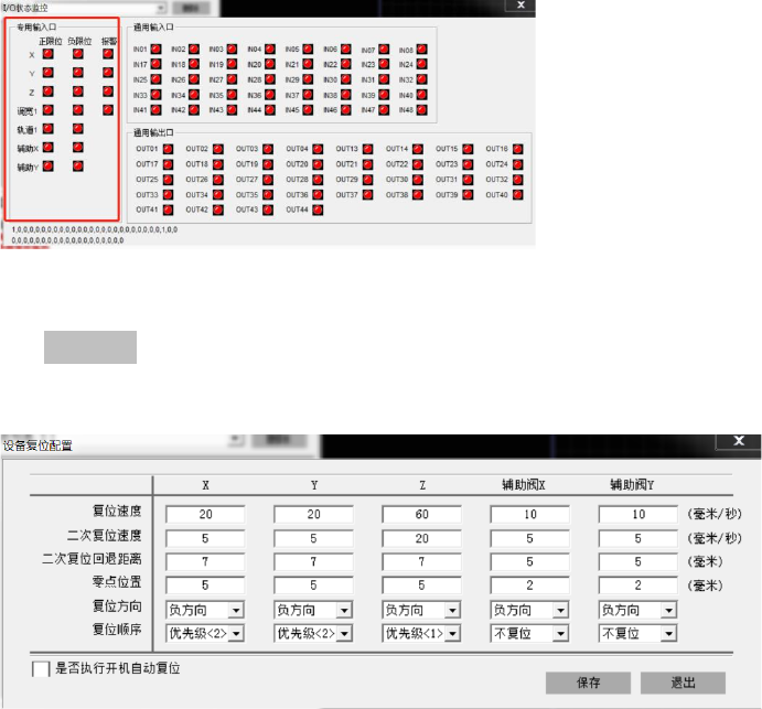 复位顺序:设置各轴的复位先后顺序。