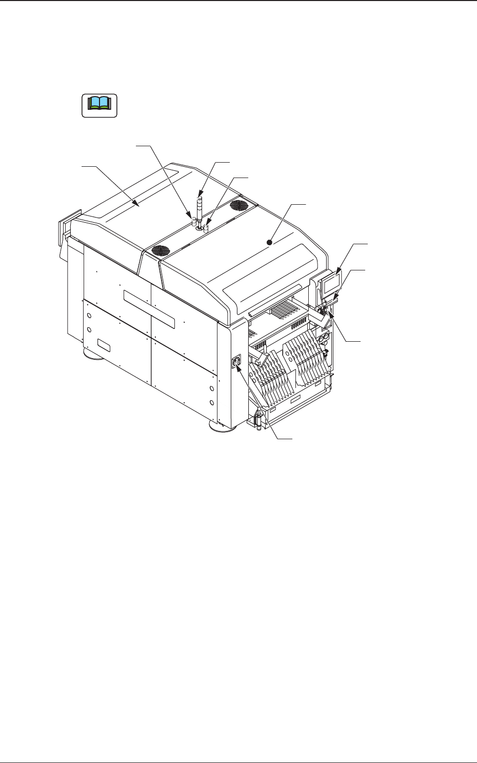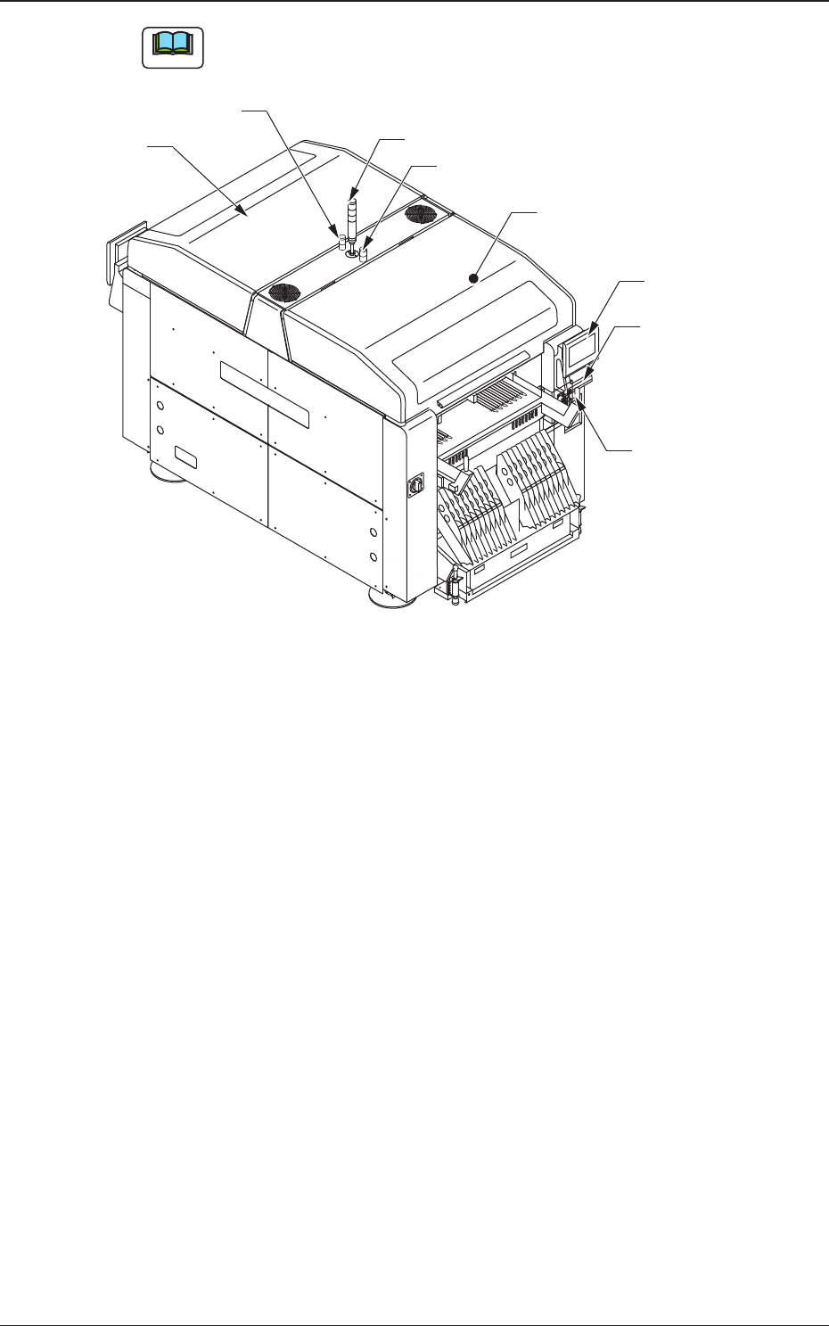 1OM-1732 1-2-1 2. 各部分的名称和功能 2.1 装置外观 Note () 内的数字表示参照项目。 塔灯(2.3.2) 正面操作台 (2.3.4) [紧急停止]按钮 (2.2.1) 辅助灯 开闭盖 (2.2.3) 电闸 (2.3.1) 辅助灯 (2.3.3) 装置正面 开闭盖 (2.2.3) 送料器准备完了开关 ([F2 READY] 按钮 ) (2.2.2.1) Fig.1A2-1 1208-002 2.各部…