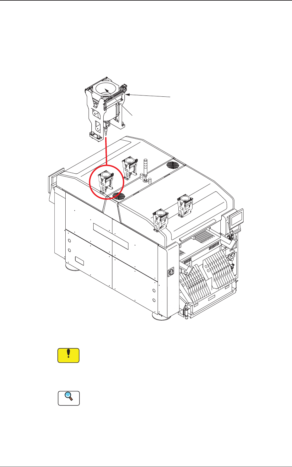 1OM-1732 1-3-9 1206-001 3.7 推车设置部 注意 注意手指被压碎 • 移动批量更换推车时,请握住把手进行操作。 • 在主机上安装批量更换推车时,请注意手不要撞到机盖。 注意脚下 • 移动批量更换推车时,请注意不要撞到脚。 尤其是地面有突起或凹凸或卡在铺盖物的高低差或下沉处 时,会出现推车的移动电阻突变的情况。 • 请将送料器插入到底。 在送料器作业台上安装带式送料器时,请插入到底,确认 是否被固定。 否则,就有可…