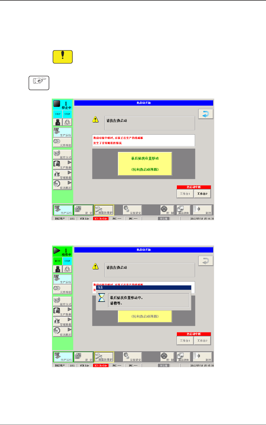 通过进行热启动,装置可以从停止的步骤重新开始生产,可以避免因产生不