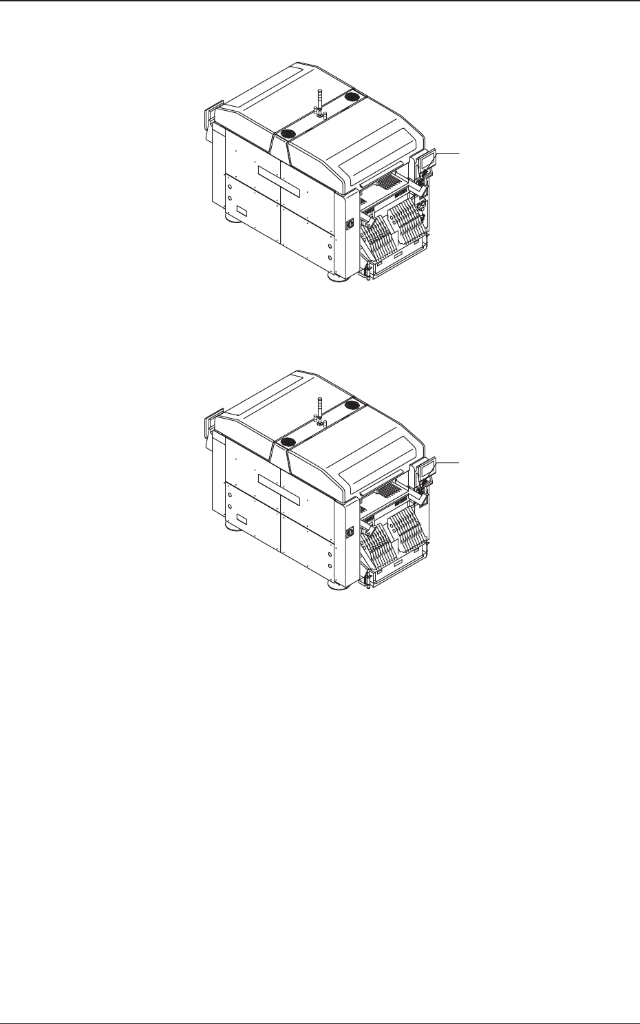 1OM-1732 1-2-4 2.2.2 送料器准备完了开关 送料器准备完了开关 ([F2 READY]按钮) 装置正面 装置背面 送料器准备完了开关 ([F1 READY]按钮) Fig.1A2-4 1208-002 2.2 使用者保护机构