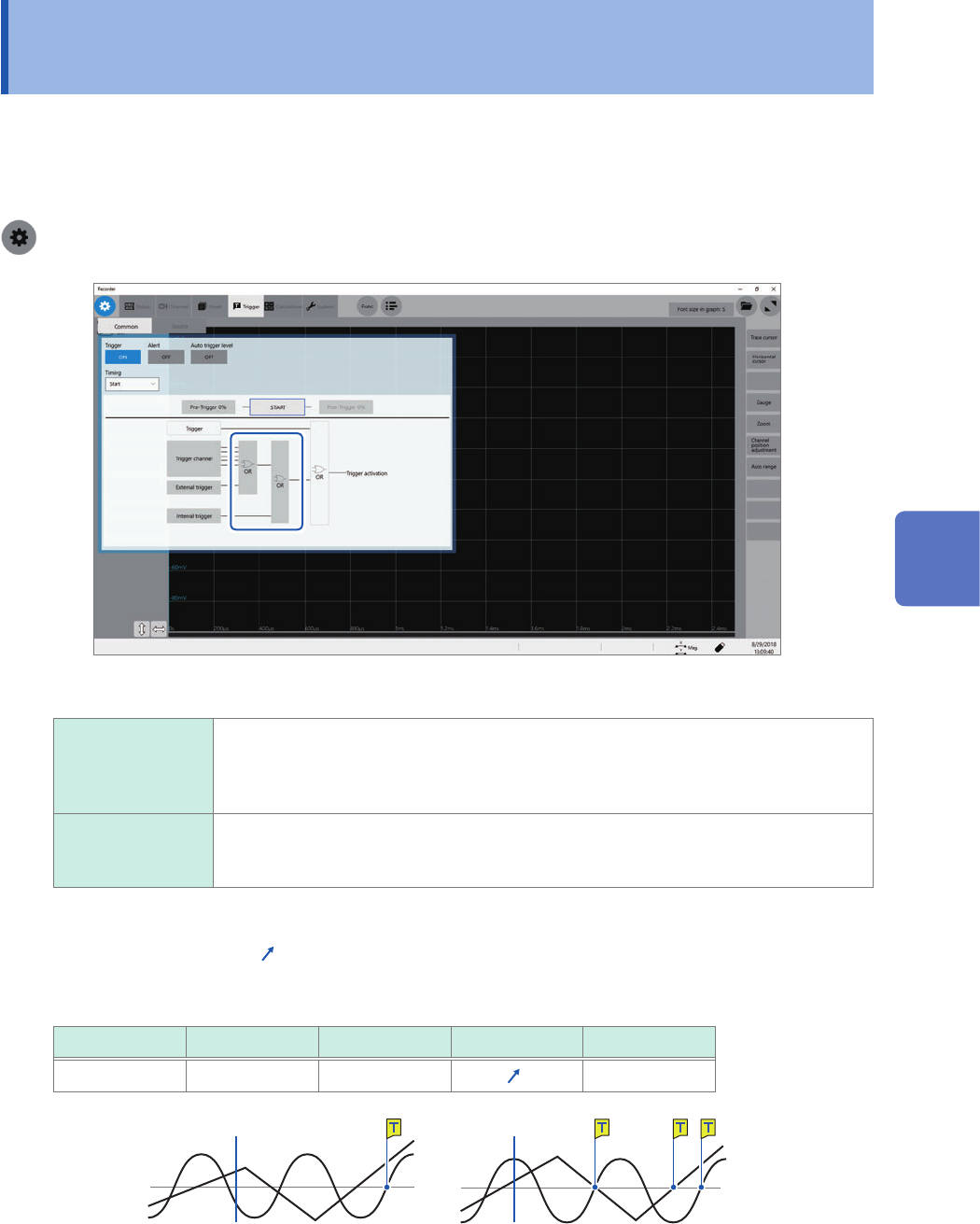 trigger sources are set to off (i.e., with no trigger setting), recording starts immediately (free run).