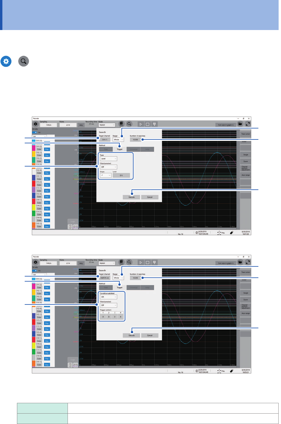 Setting a trigger condition allows you to search measured data for positions where the trigger