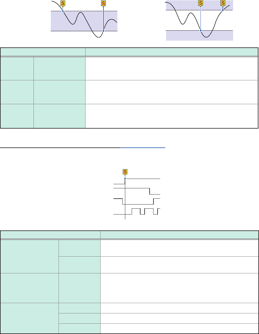 128 Searching For Positions Where a T rigger Condition Is Satised (2) With the [In] or [Out] se tt ing [In] Upper limit value Lower limit value [Out] Upper limit value Lower limit value Setting Description Filter Off …