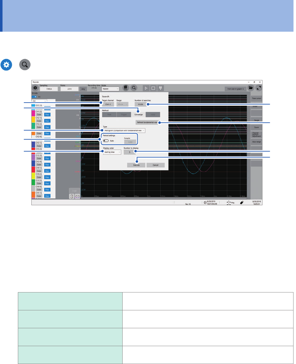 131 Searching For Differences from a Fundamental W ave (Memory HiConcierge) 5 Use the [Period setting] toggle switch to choose a period setting used for searches. The instrument searches for differences from the fundamen…