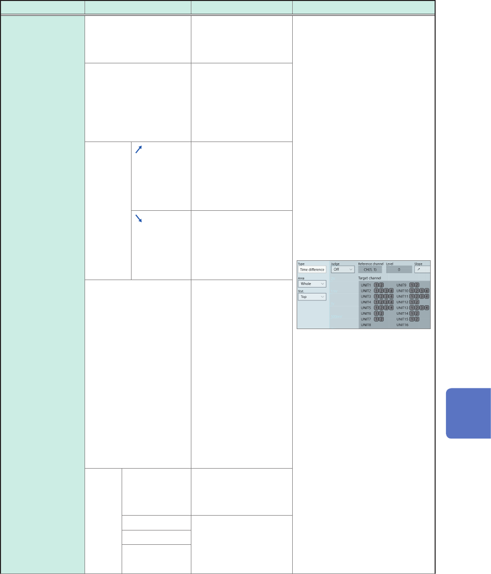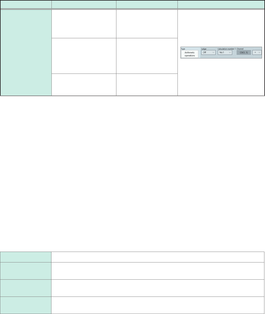 145 Conguring the Numerical Calculation Settings Calculation type Setting Description Example of screen Time difference Phase contrast Reference channel , T arget channel (Analog, logic, waveform calculation) Allows you…