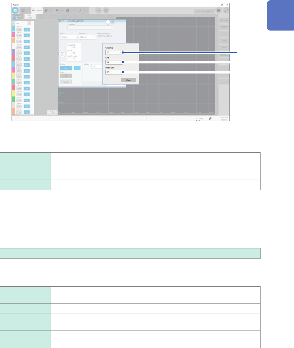 12 Conguring the Input Channel settings 3 Click the [ Range (f.s.)] box, and then choose a measurement range from the list. Select a measurement range for each channel. The value of the range represents its maximum disp…