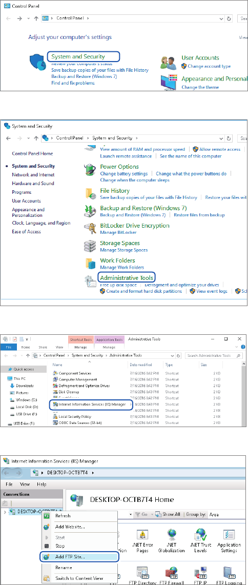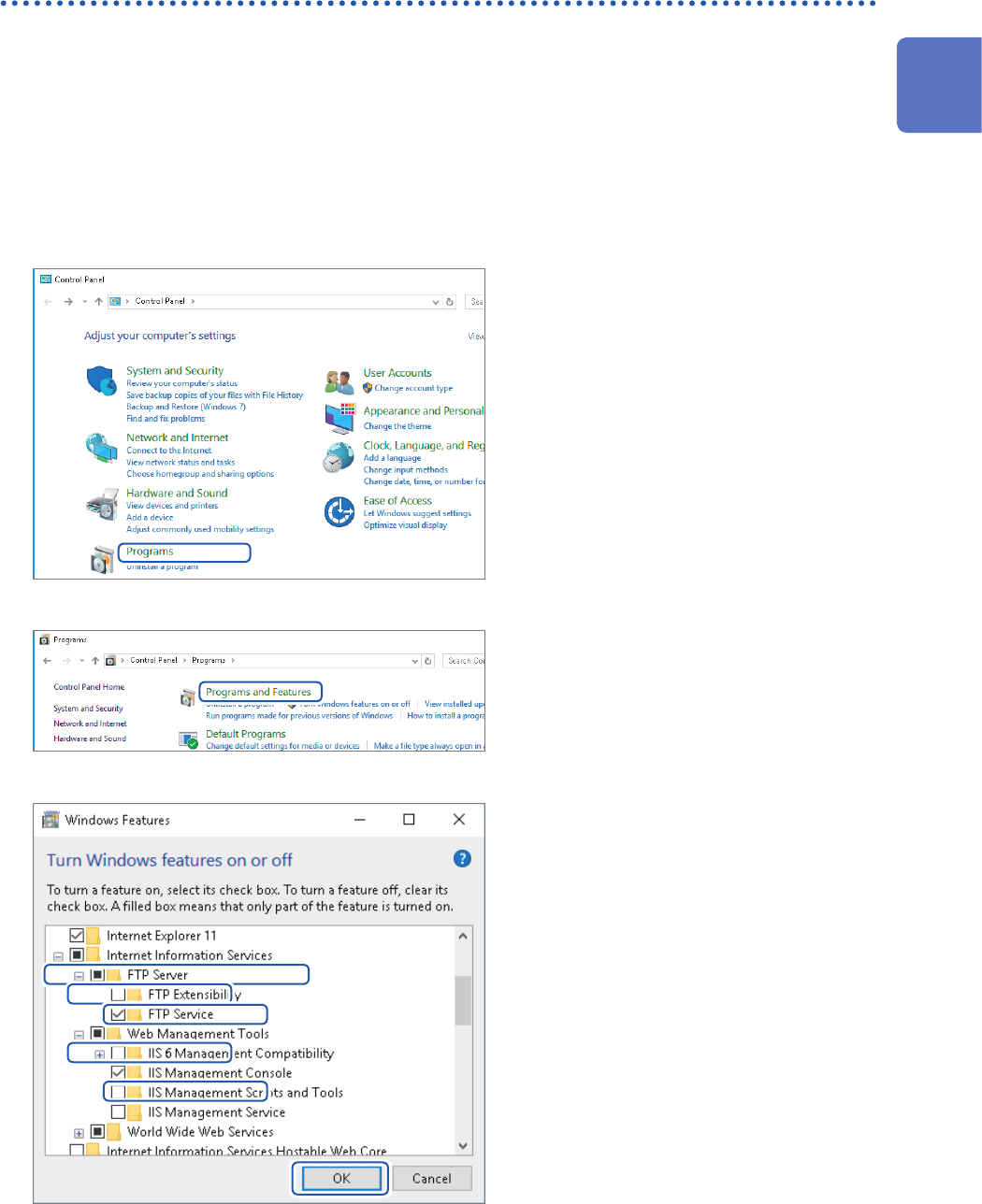 193 Sending Data to a Computer With the FTP Client Function Conguring an FTP server setting on a computer The following example shows how to congure the FTP server settings on Windows 10. The Microsoft ® Windows ® Home…
