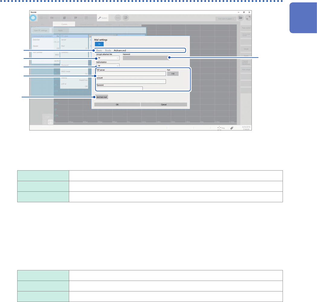 201 Sending Email messages Conguring the authentication, compression, and encryption settings for email messages to be sent 1 2 4 5 3 6 1 Click [Advanced] . 2 Click the [Encrypt attached le] box, and then choose an att…