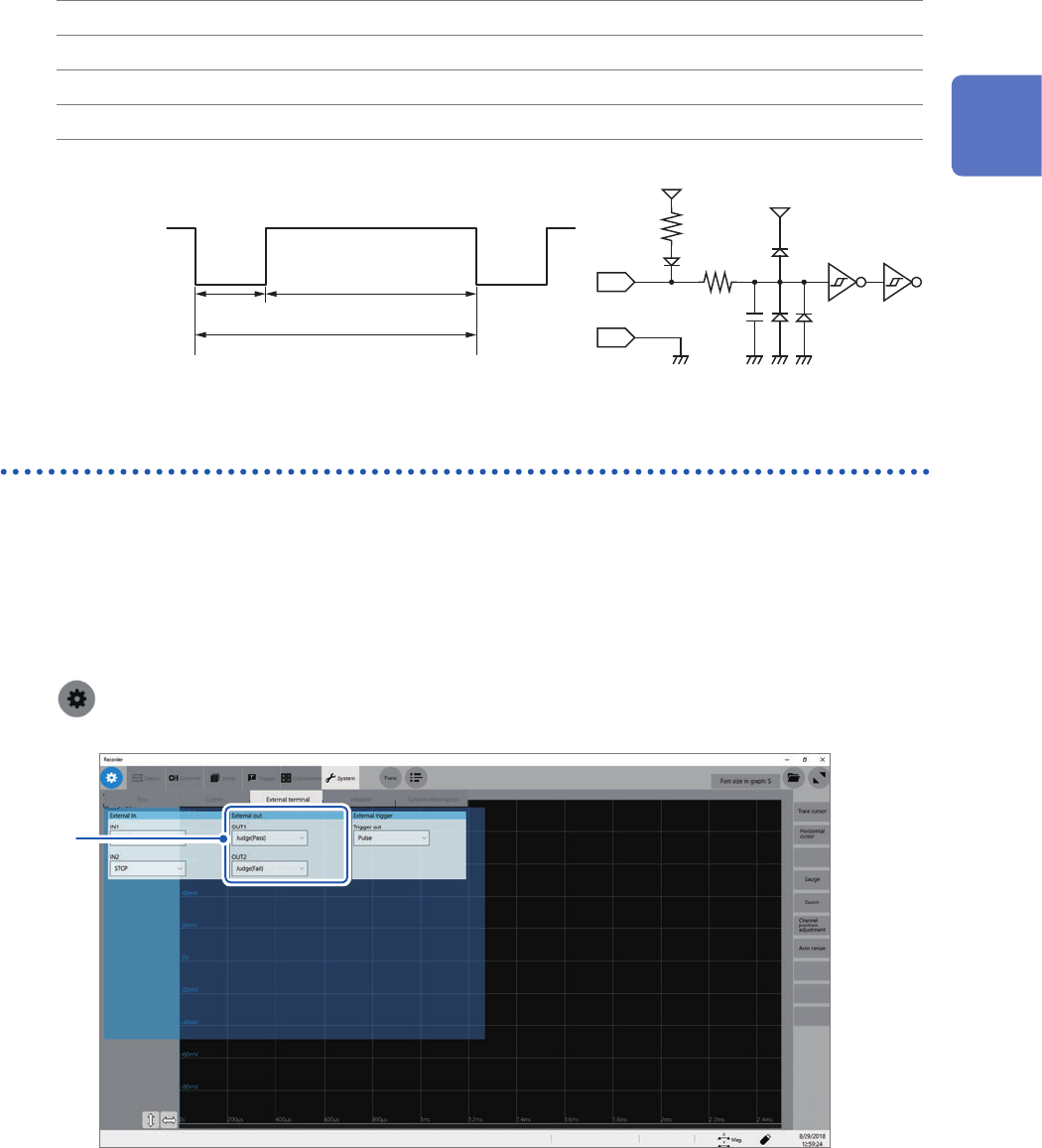 210 External Input and Output 12.1 External Input and Output External input (IN1), (IN2) Externally inputting signals can start and stop measurement as well as save data. In factory default settings, the ST ART signal is…