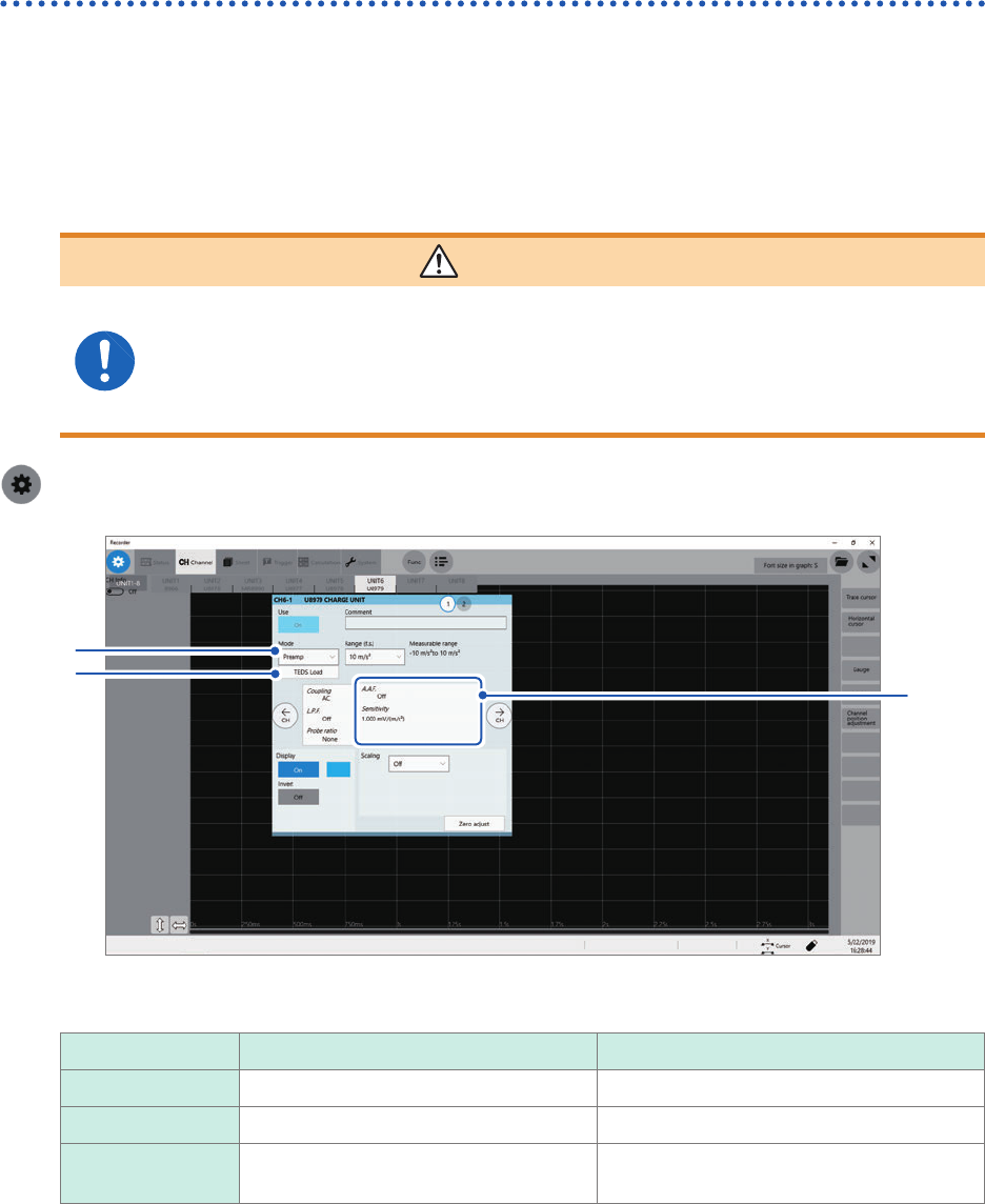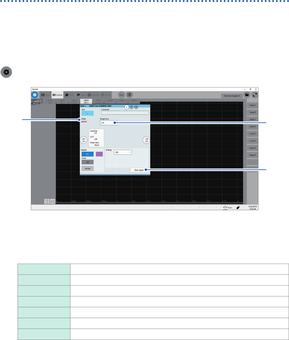 61 Conguring Measuring-Module-Specic Settings (When you have to choose a current sensor setting) Click the [Mode] box, and then choose a connected current sensor . Available measurement ranges, which depend on chosen c…