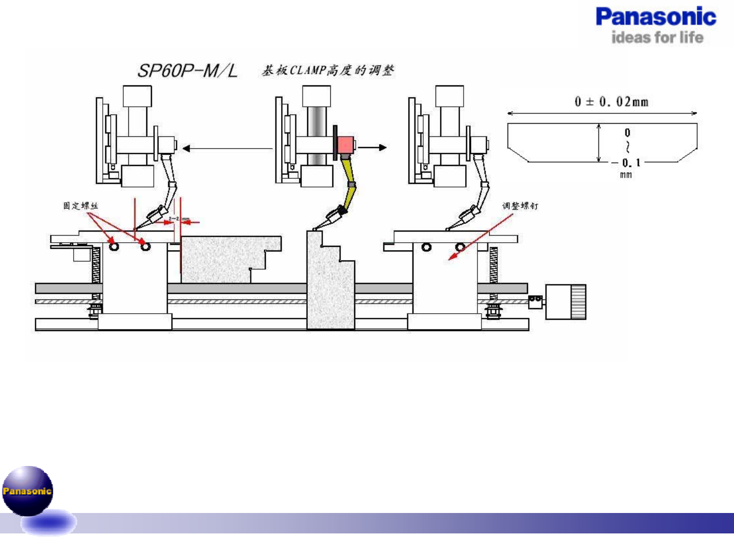 若不良,松开固定螺丝2粒,使用调整螺丝2粒调整CLAMP高度与平面度(注意:高度