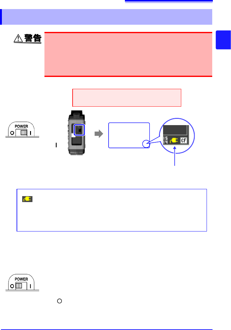 未显示标记时,表明未通过电源线路向本仪器供电。如果在这种状态下继续进