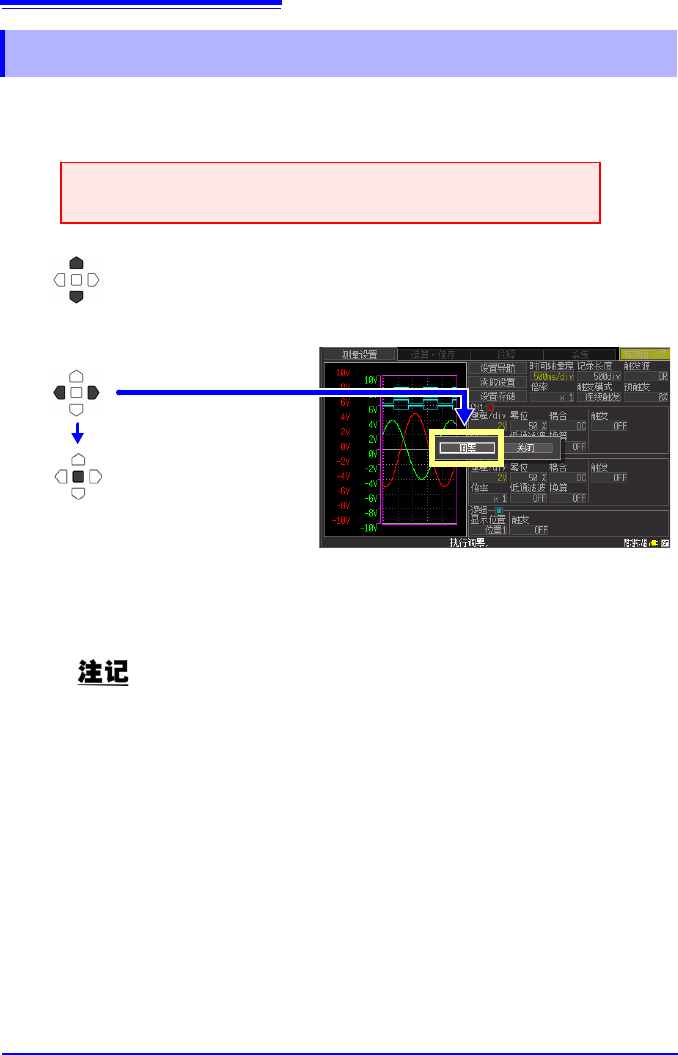 在波形画面或测量设置画面中同时按下 1 秒钟以上。