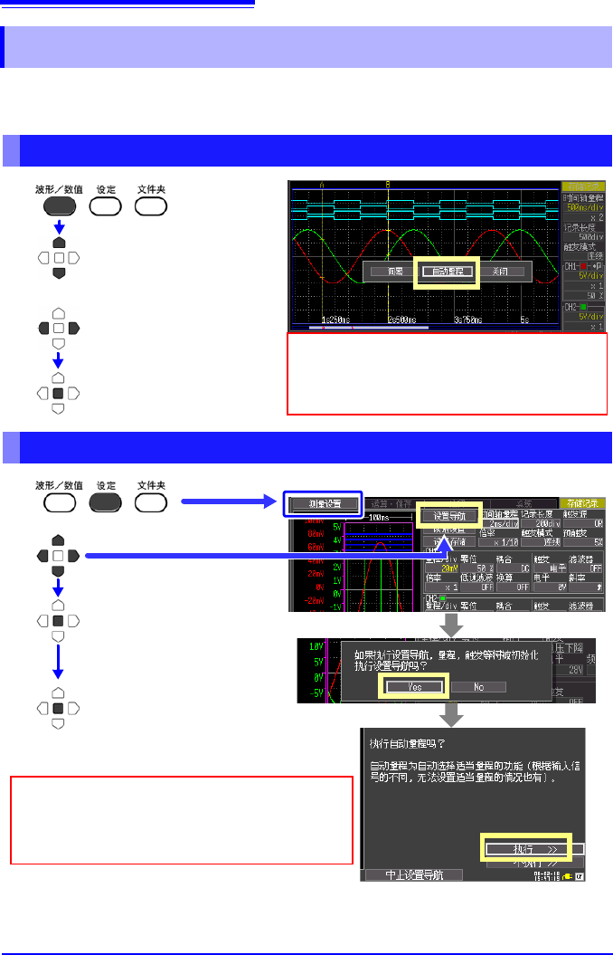 不清楚量程确定方法时,可在波形画面或测量设置画面中自动设定 (自动量程)。