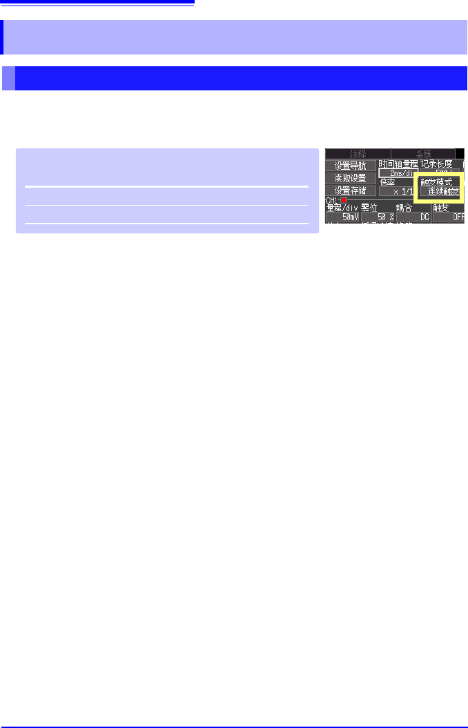 连续触发 ∗ 按下开始 / 停止键之前重复记录。