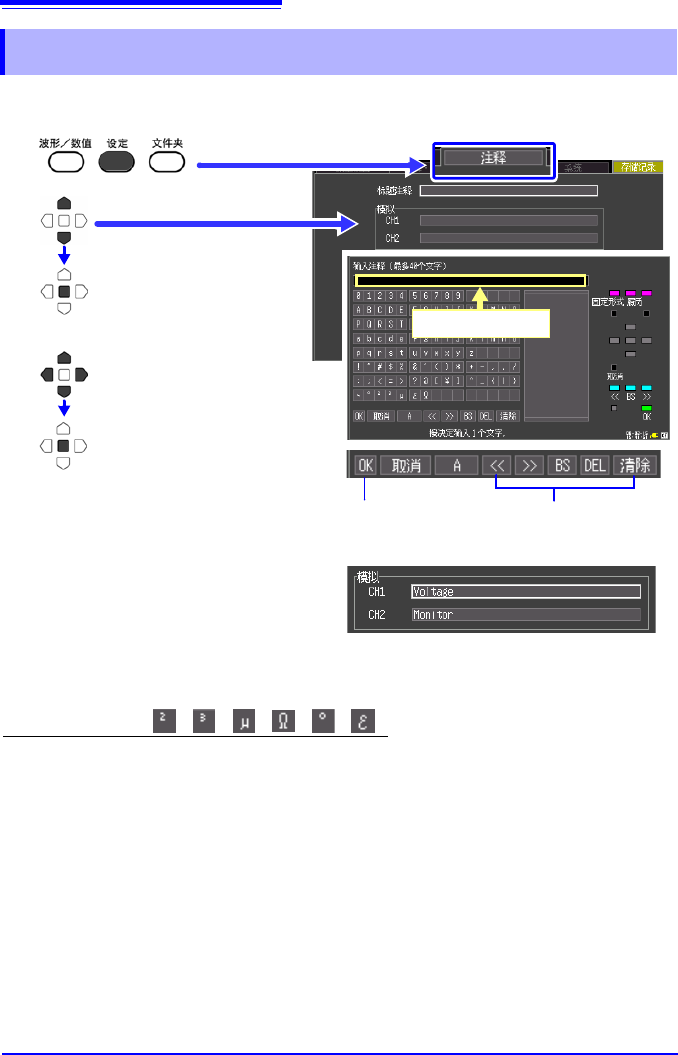 可对测量数据的标题或各输入波形附加注释。(最多 40 个半角字符)