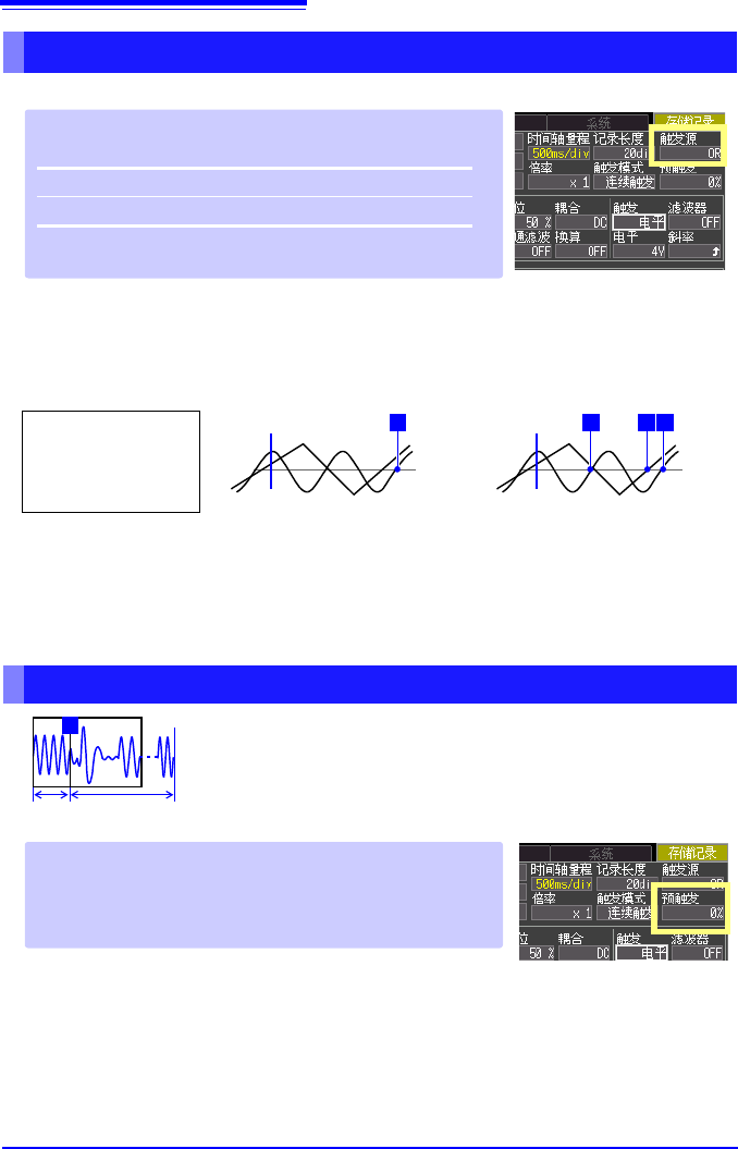 要记录触发前的波形时进行设定。将触发位置(触发点)设定在