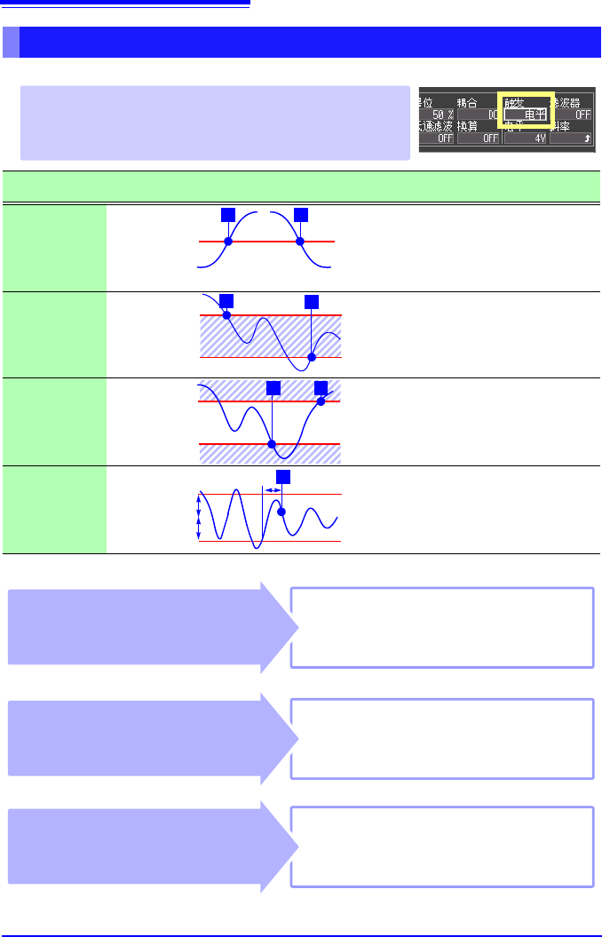 波形穿过 0V 的上升 ( ↑ ) 时开始触发的情况