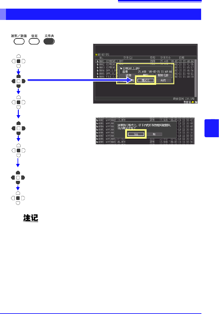 可在本仪器的文件画面中对 CF 卡进行初始化。