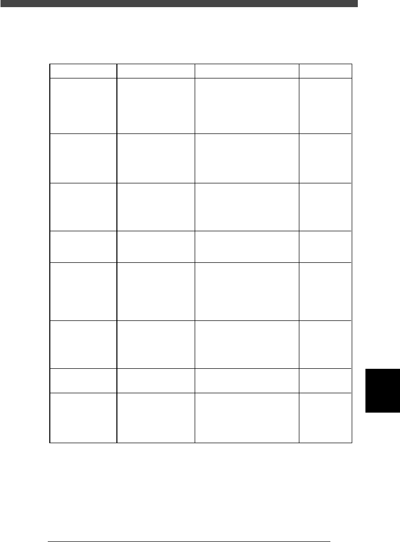 JSD8013110 サービスマニュアル 第 7 章 7- 12 エ ラ ー と 対 策 7 6 . F N C のエラー F N C ( フライングノズルチェンジ) 機能に関するエラーとその対策について 説明します。 44710-D8-00 症状 考えられる原因 対策例 参照 フライングノズルの 位置検出ができない 指定したノズルが使 用できる状態になっ ていない フライングノズルを クランプできない 待機位置の…