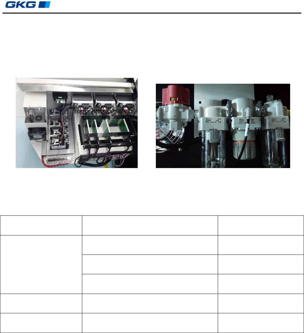凯格精密机械有限公司 - 23 - 气路总压力: 6Kgf/cm 2 刮刀压力: 0~10 Kgf/cm 2 网框夹紧压力: 5 Kgf/cm 2 真空吸压力: 4 Kgf/cm 2 图 3- 18 电气控制箱 图 3-19 气动三联体 ( 带压力开关 ) 3. 4.6 不 同用途,所 推荐用 油或油 脂 注: GKG 使用的油脂为 Shell Grease EP No.2 用途 产品名称 制造商 一般用途 Alvania Grease…