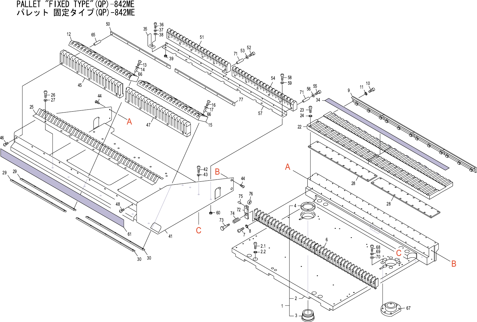 PALLET "FIXED TYPE"(QP)-842E パレット 固定タイプ(QP)-842E 番号 図番 & コード番号 個数 品名 規格 材質 備考 No. Drg.No. & Code No. QTY Description Rating Materials Remarks Note.1:(Specified parts selection) DGQP5120(t=4.00),DGQP513…