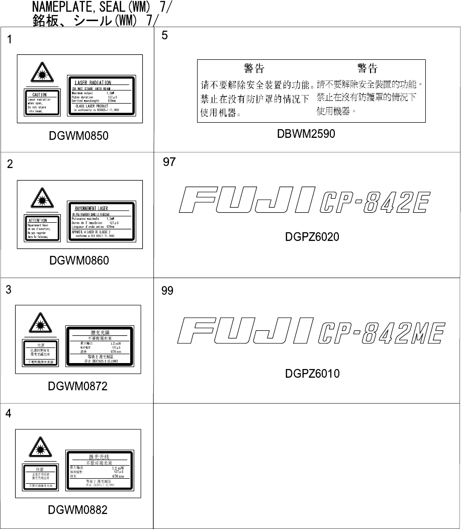 NAMEPLATE,SEAL(WM) 7/ 銘板、シ−ル(WM) 7/ 番号 図番 & コード番号 個数 品名 規格 材質 備考 No. Drg.No. & Code No. QTY Description Rating Materials Remarks 1 DGWM0850 1 SEAL シール PL English 2 DGWM0860 1 SEAL シール PL French 3 DGWM0872 1 SEAL…