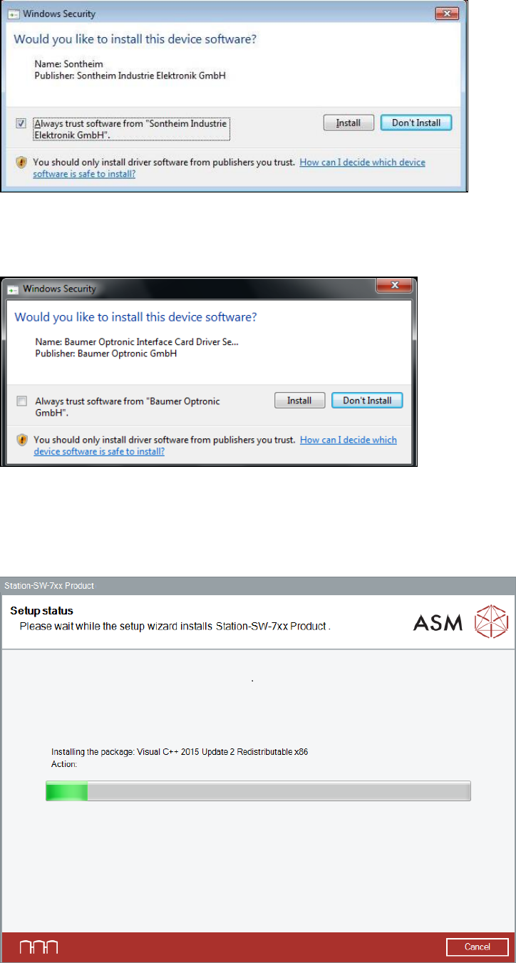 ► Activate the Always trust software from "Baumer Optronic GmbH" field.