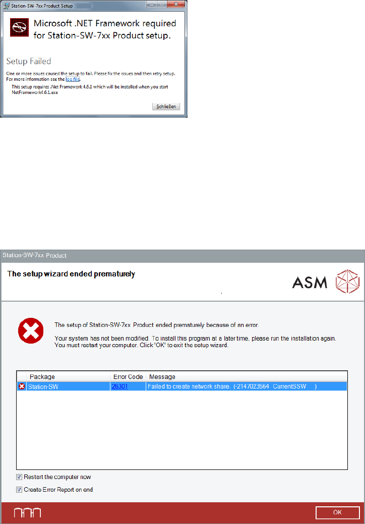 The following error message may be displayed after starting the station software installation.