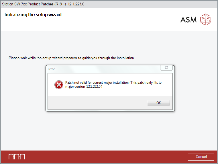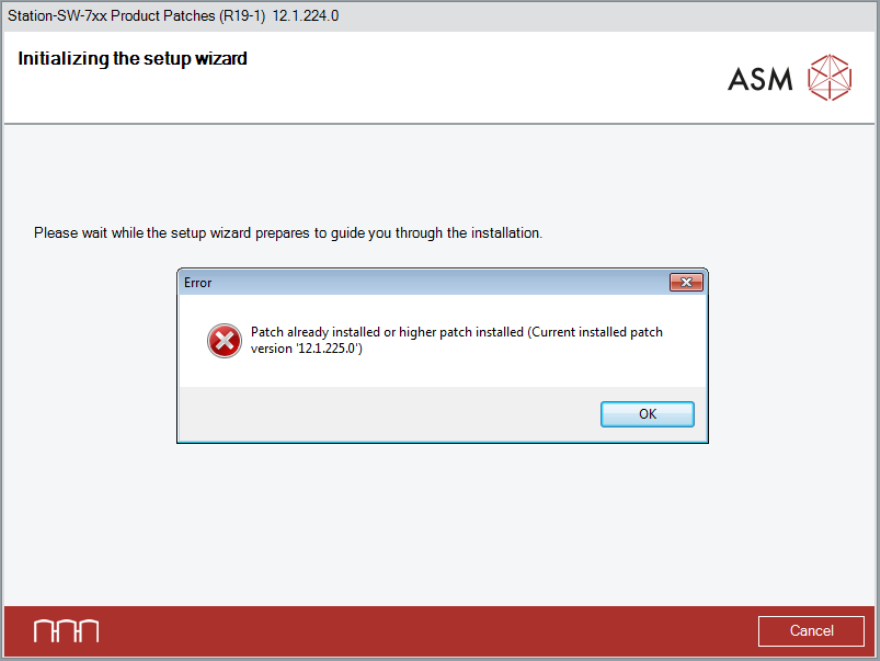 If the patch is already installed or a higher version is installed, a corresponding error message is