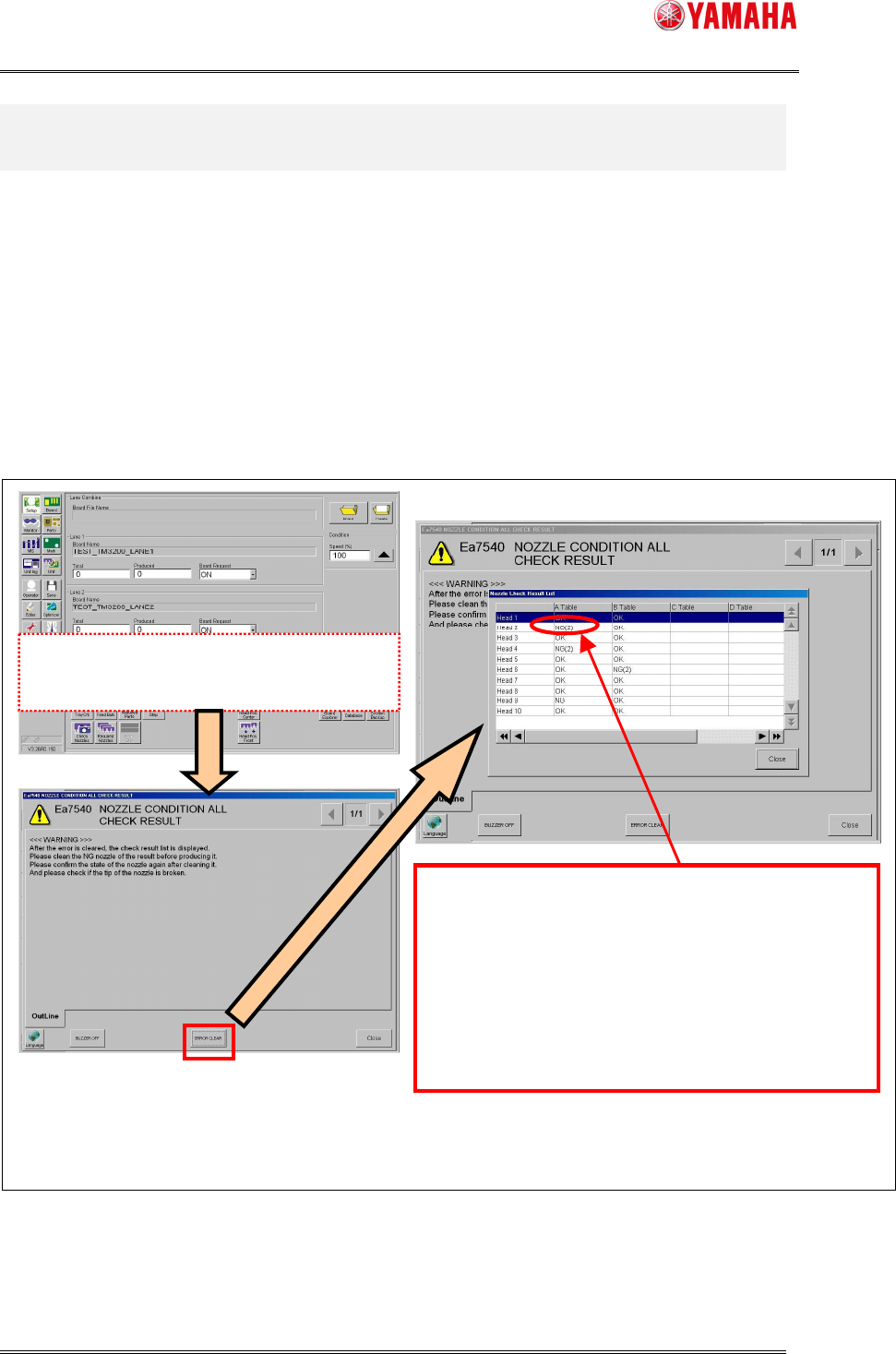 The “Nozzle Check Result List” dialog is displayed when "ERROR CLEAR" button is tapped on
