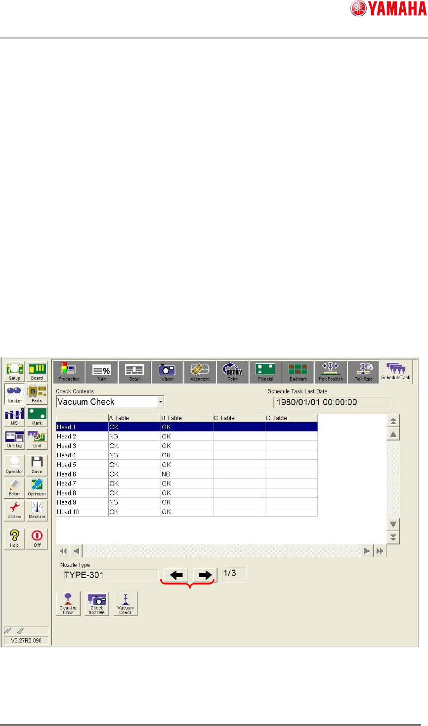 On this screen, a result of Schedule Task is displayed, and you can see which nozzle