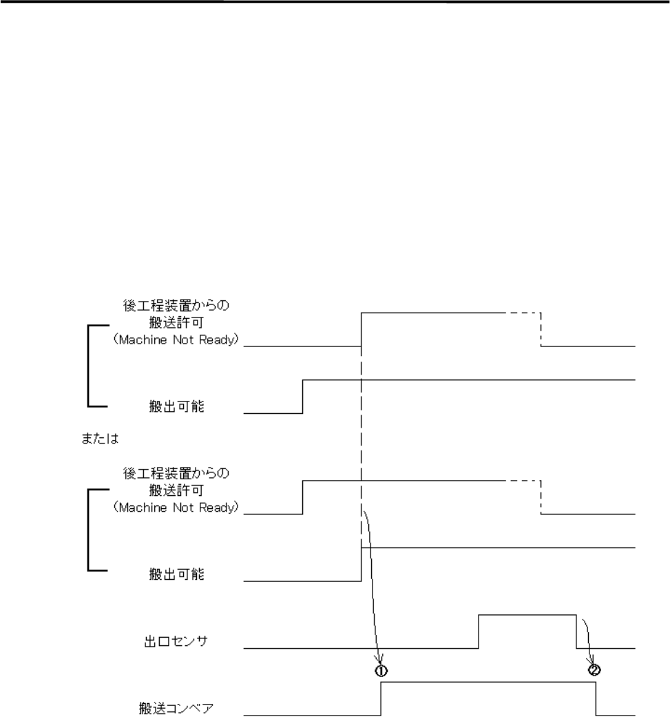 ① 搬出可能状態で後工程装置からの搬送許可(MACHINE NOT READY)入力が ON