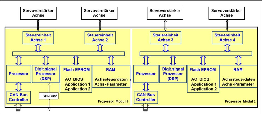 Achscontrollers. Das 3. nicht sichtbare Motorstrom-Sollsignal wird auf dem Servoverstärkerboard be
