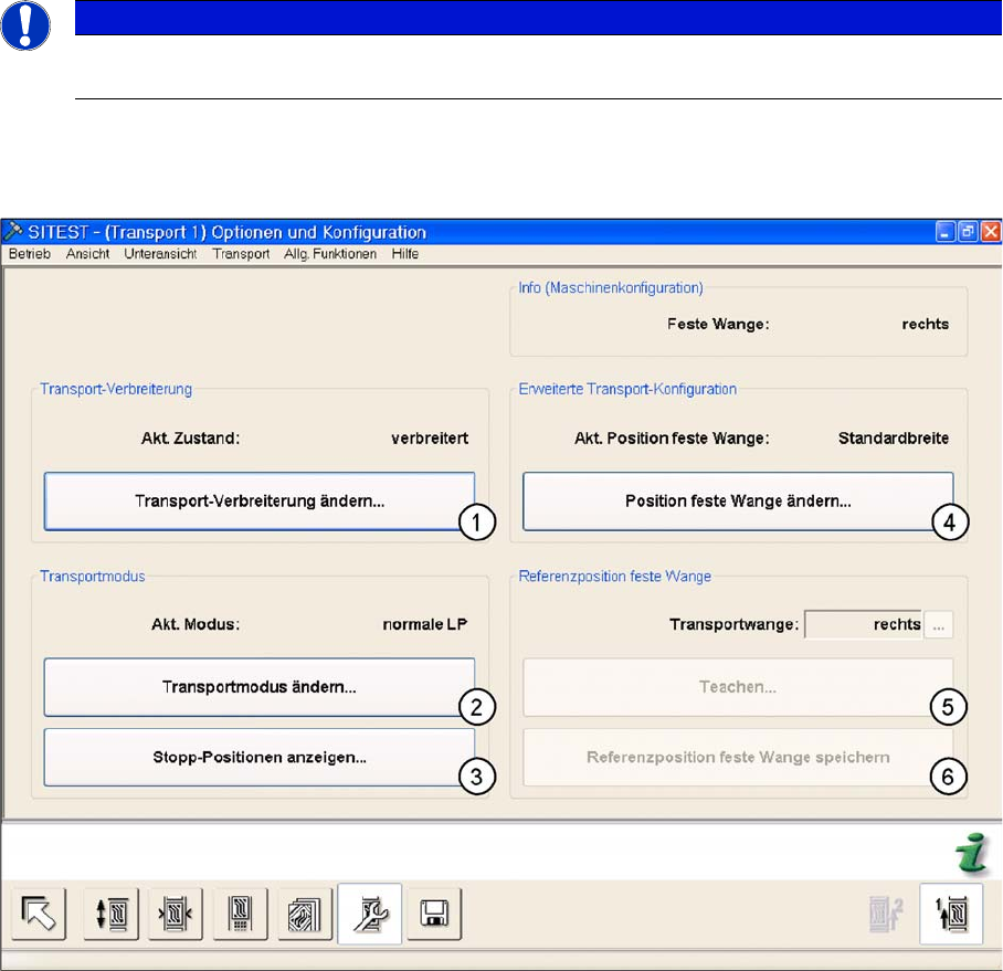 5. Punkt 5 und 6 nur mit SIPLACE Service Passwort aktiv! Es kann die feste Transportwange
