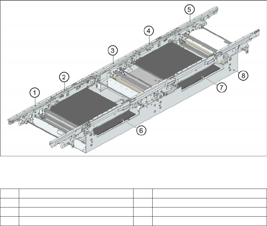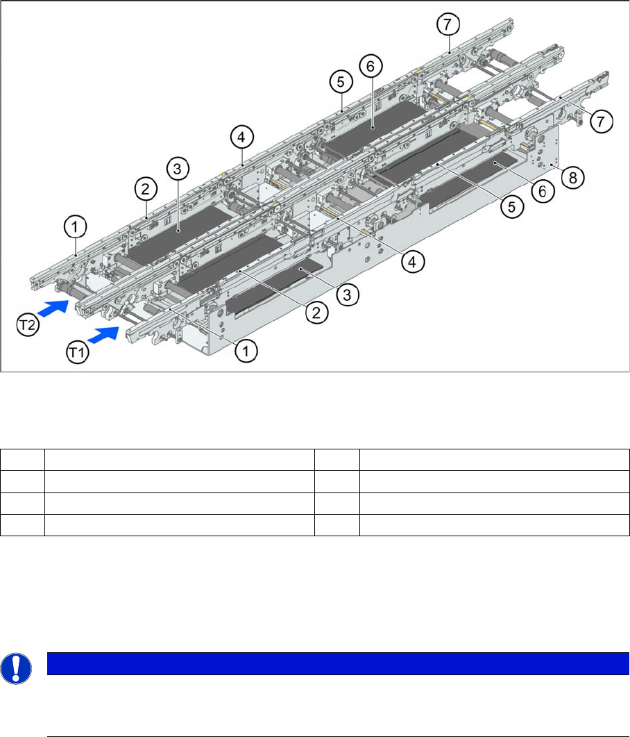 3 Übersicht 3.4.9 Transportsystem 3.4 Baugruppen Student Guide SIPLACE D-Serie (FSE) 47 3.4.9.2 3 . 4 . 9 . 2 K o n s t r u k t io n E in f a c h t r a n s p o r t Konstruktion Einfachtransport Konstruktion Leiterpla tte…