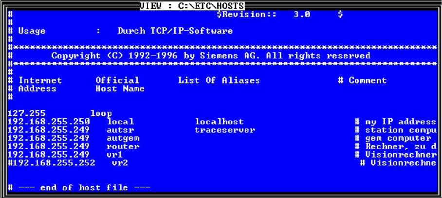 4 Kommunikation und Steuerung 4.2 Netzwerk 4.2.1 Kontrolle der Netzwerk-Adressen 58 Student Guide SIPLACE D-Serie (FSE) Einträge in der hosts -Datei Beachte: Es gibt keinen MC i n einem Single Box PC System