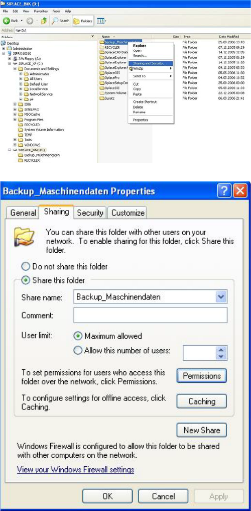 Mit Diesen Ordner freigeben (Share this folder) wird