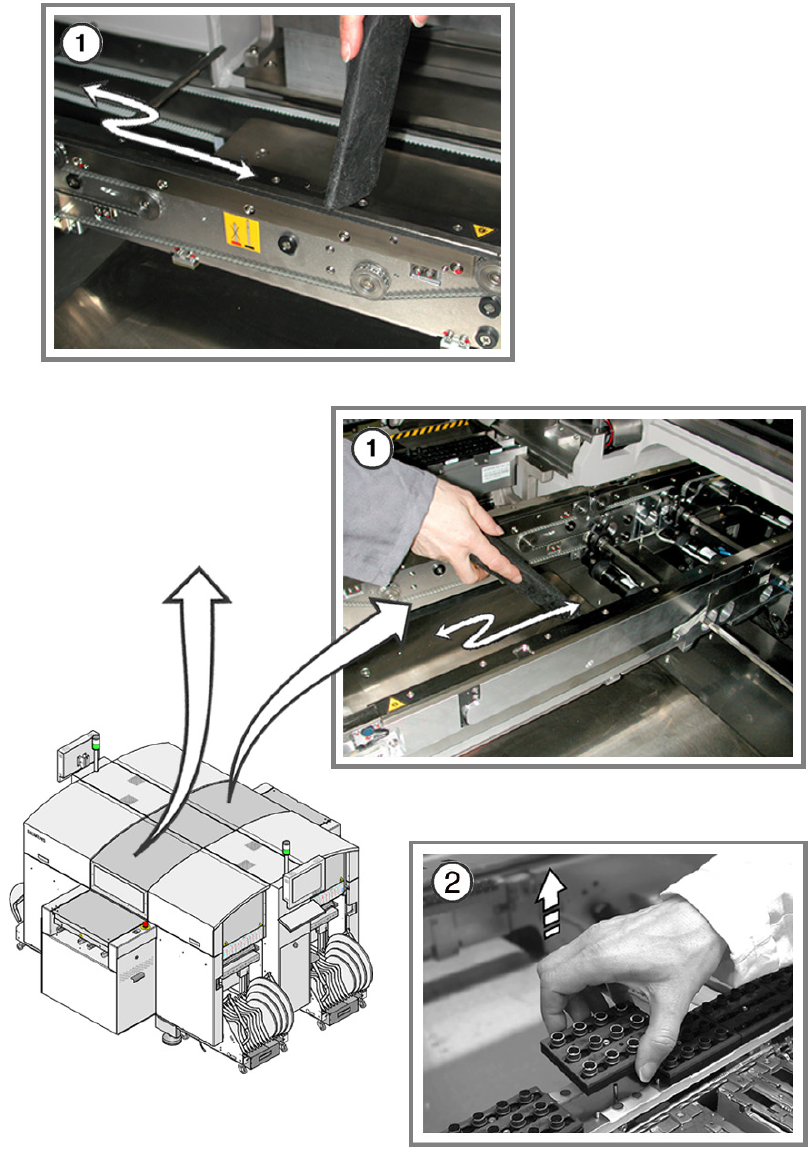 次のメンテナンス手順の間、実装マシンに基板を入れてはいけません。 4