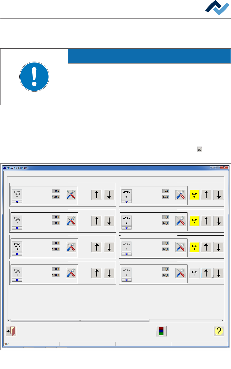Der Eingabedialog [Breitenverstellung] In den Dialogen der Breitenverstellung können Sie die Transportbreiten einstellen sowie die Mittenunterstützung positionieren. HINWEIS Keine Änderungen möglich? Für den Zugang zu di…