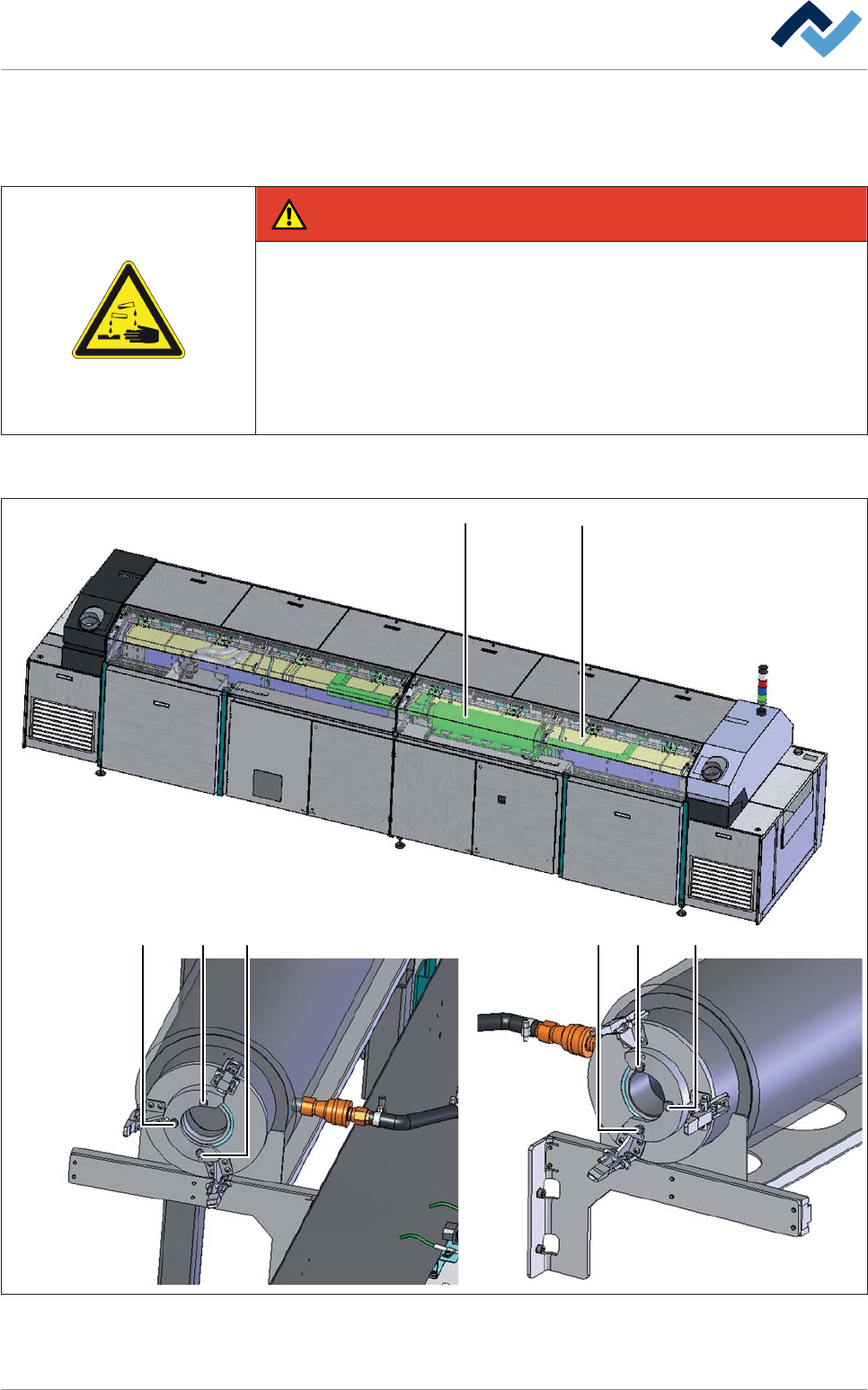 14-tägig durchzuführende Wartungsarbeiten Kondensatfalle in der Vorheizzone, Filterpatrone ersetzen GEFAHR Gefahr von Sach- und Personenschäden durch aggressive Kondensate! ü Kondensate können Haut und Schleimhäute angre…