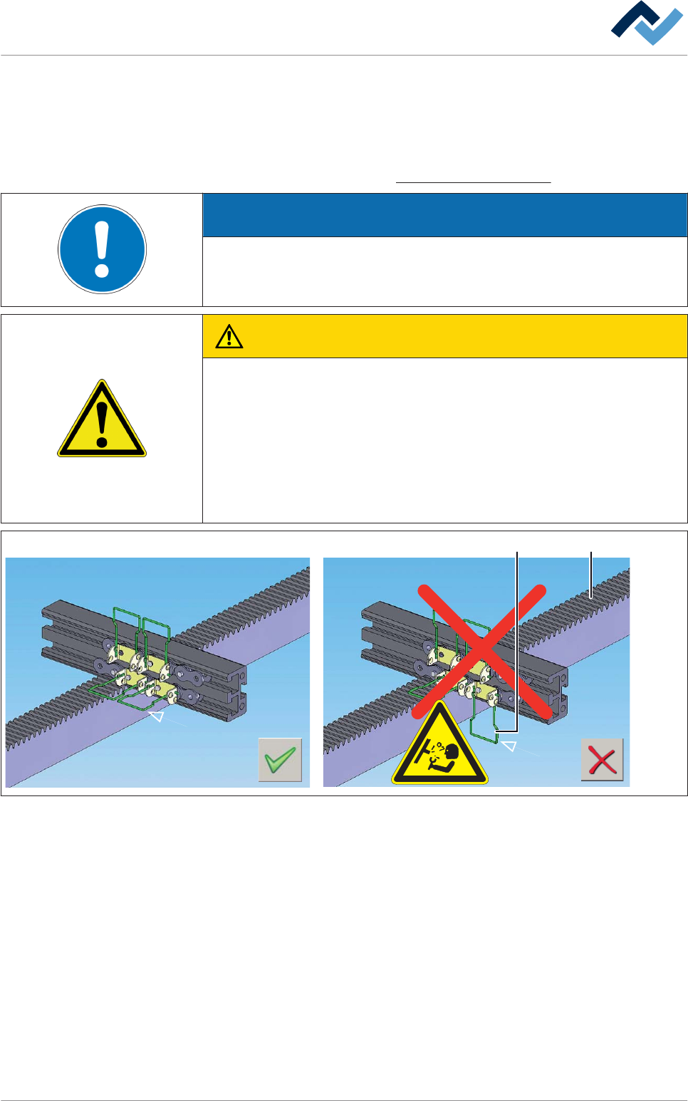 Sachschäden möglich, Kollisionsgefahr der Klappbügel (A) mit der Zahnstange