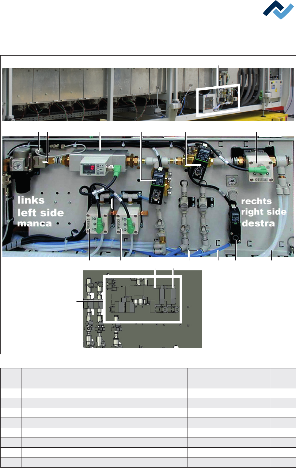 Pos Benennung Artikelnummer A B 8 Durchfluss-Schalter 164273 x 9 Proportionalventil (Stellglied, nur bei Option [Temperaturma- nagement]). 158156 x 10 Druckregelventil 169887 x 11 5/3 Wege Ventil (Nur bei Option [Wartung…