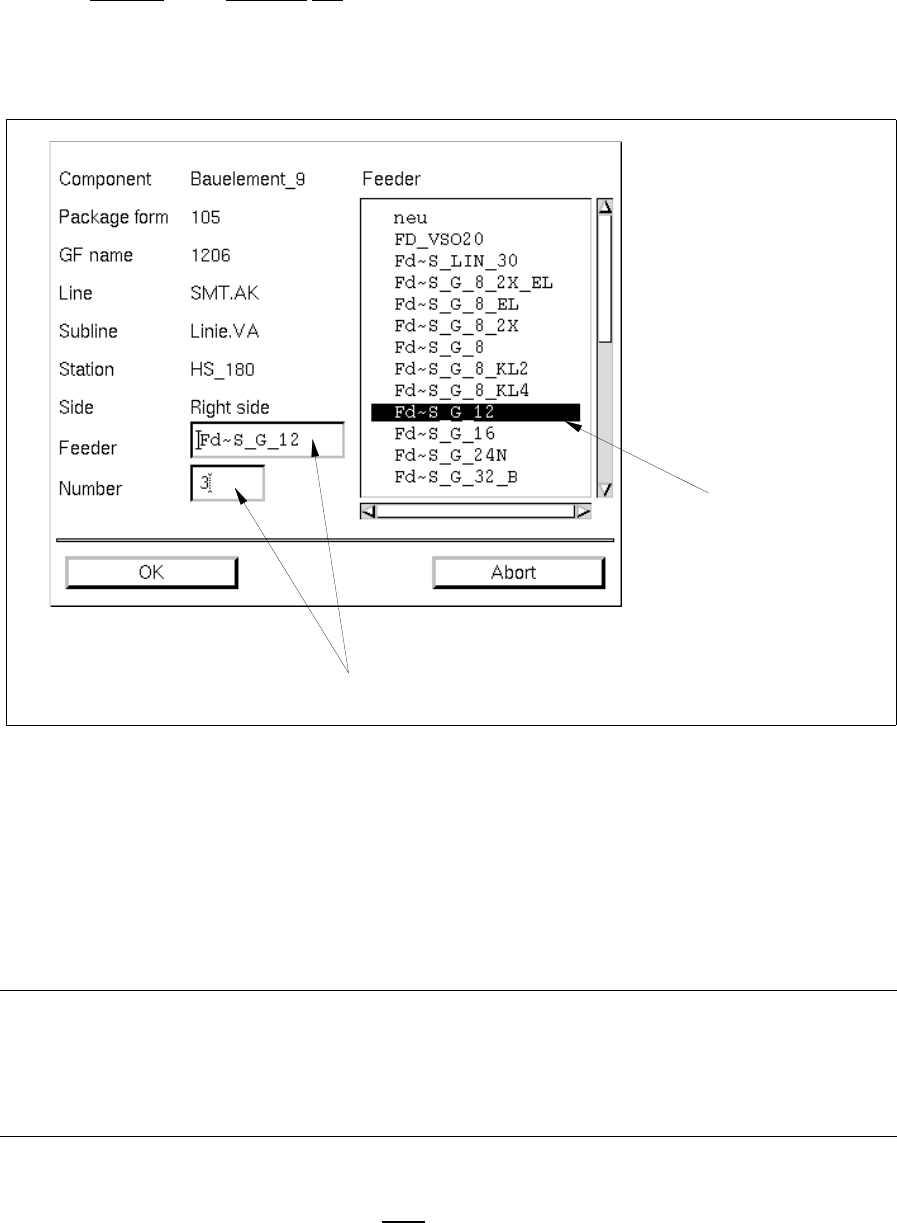 Fig. 10.1.2). The name of the selected feeding unit is entered in the "Feeder" editing field.